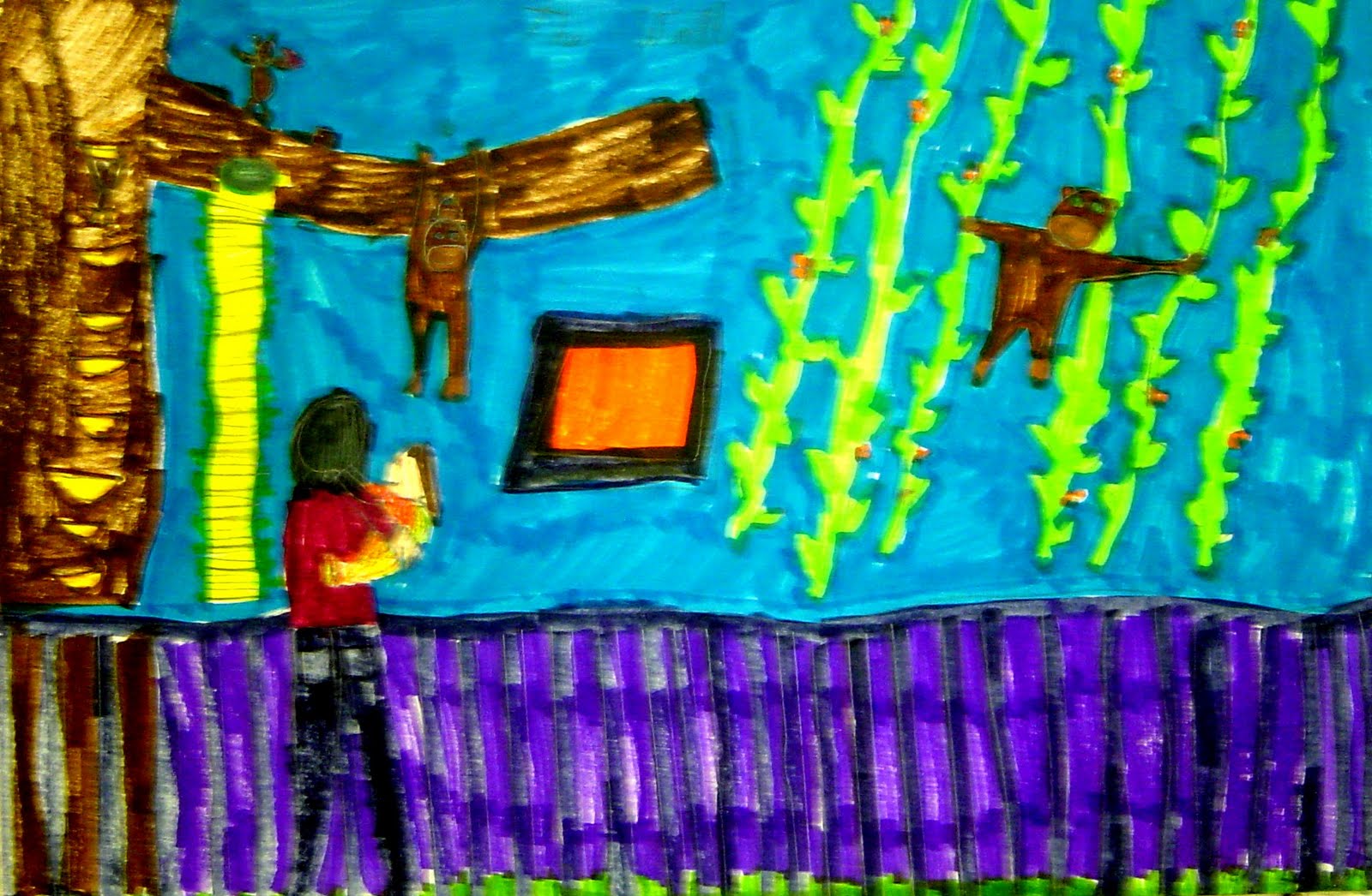 My colleague and I have been involved in collecting a piece of art work from each child and compiling it until the end of 6th grade. Each student should include the following subjects in his or her art: plants, animals, buildings, vehicles, and people. They may find it more exciting to set the scene either indoors, or out. It can take place in a specific place or an imaginary place. The young artists start out drawing in #2 pencils.